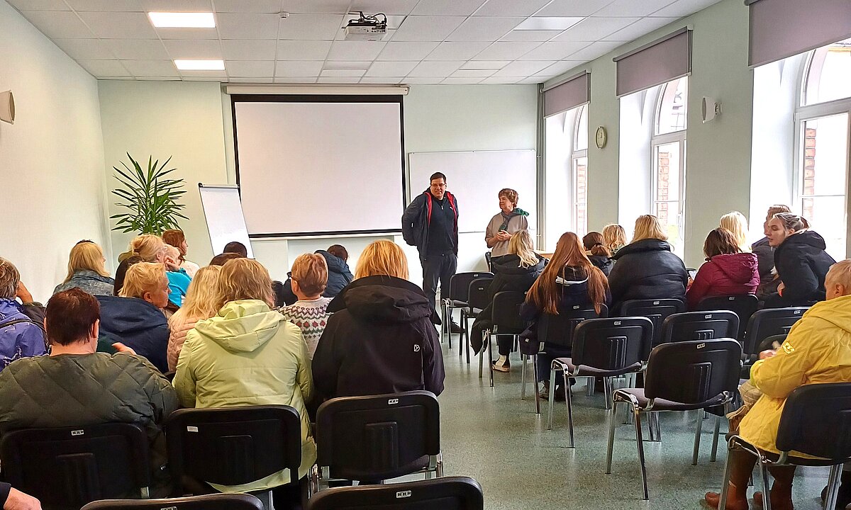 Filiāles vadītāja Mārīte Raudziņa ciemiņiem pastāstīja par studiju programmām filiālē un šī studiju gada jaunumiem: inkubācijas gada nodarbībām filiālē, īsā cikla profesionālās augstākās izglītības studiju programmas absolventu vēlmi studijas turpināt bakalaura programmā, par jauno studiju programmu “Speciālās izglītības skolotājs vai skolotājs logopēds” un LU Pieaugušo pilnveides akadēmijas plašo mūžizglītības programmu piedāvājumu ar ESF atbalstu.